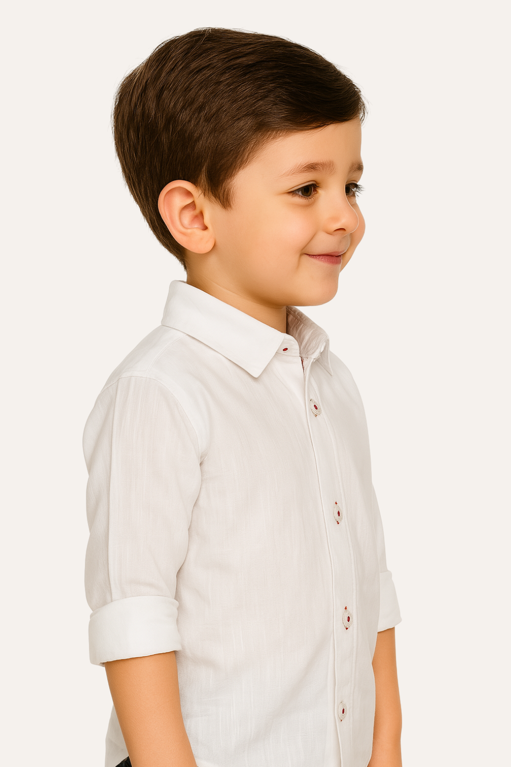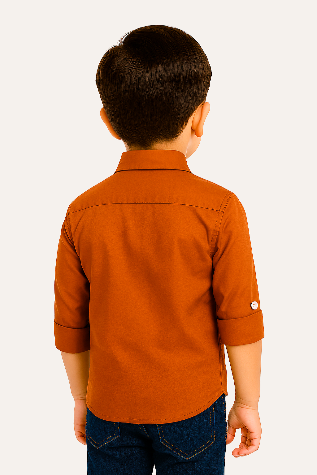 Keep your little one stylish and comfortable with this Boys’ solid cotton regular fit shirt. Made from 100% soft breathable cotton, it ensures all-day comfort—even in warm weather. The smart regular fit offers a neat look without restricting movement, making it perfect for school, parties, or play. Designed with kid-friendly features like smooth buttons, soft seams, and a tagless neck for irritation-free wear. Available in versatile solid colors and multiple sizes—this shirt is a must-have in every boy’s wardrobe.