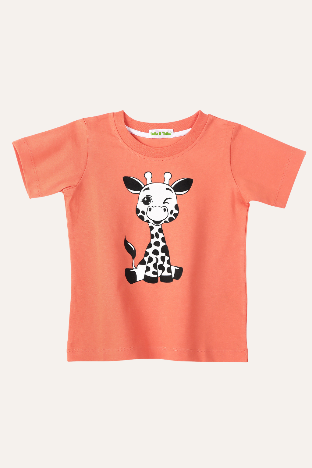 Boys Cotton Half Sleeve T-Shirt - Casual Summer Wear – Giraffe Print