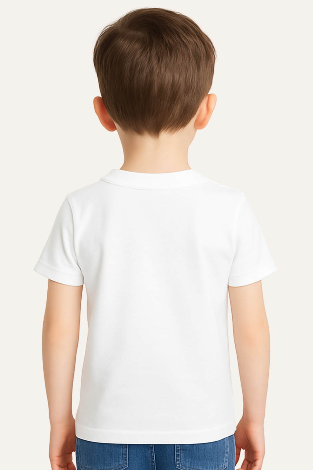 This premium quality pure cotton T-shirt features an adorable design, perfect for boys. Crafted from extra soft fabric, it ensures maximum comfort for your little one, while the bio-washed material guarantees a gentle touch against sensitive skin. The T-shirt is designed with the best quality stitching, ensuring durability for everyday wear.