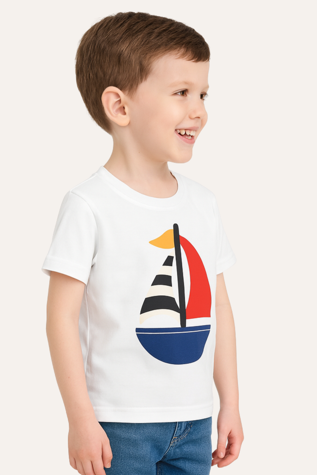 Boys Cotton Half Sleeve T-Shirt - Casual Summer Wear – Boat Print