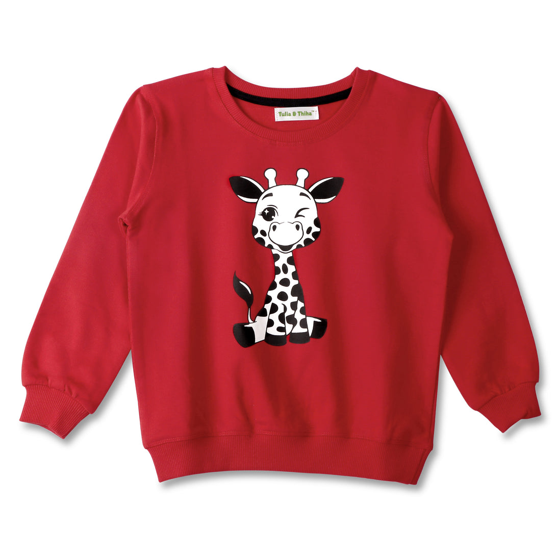 Red Sweatshirt Cotton Round Neck Regular Fit Giraffe