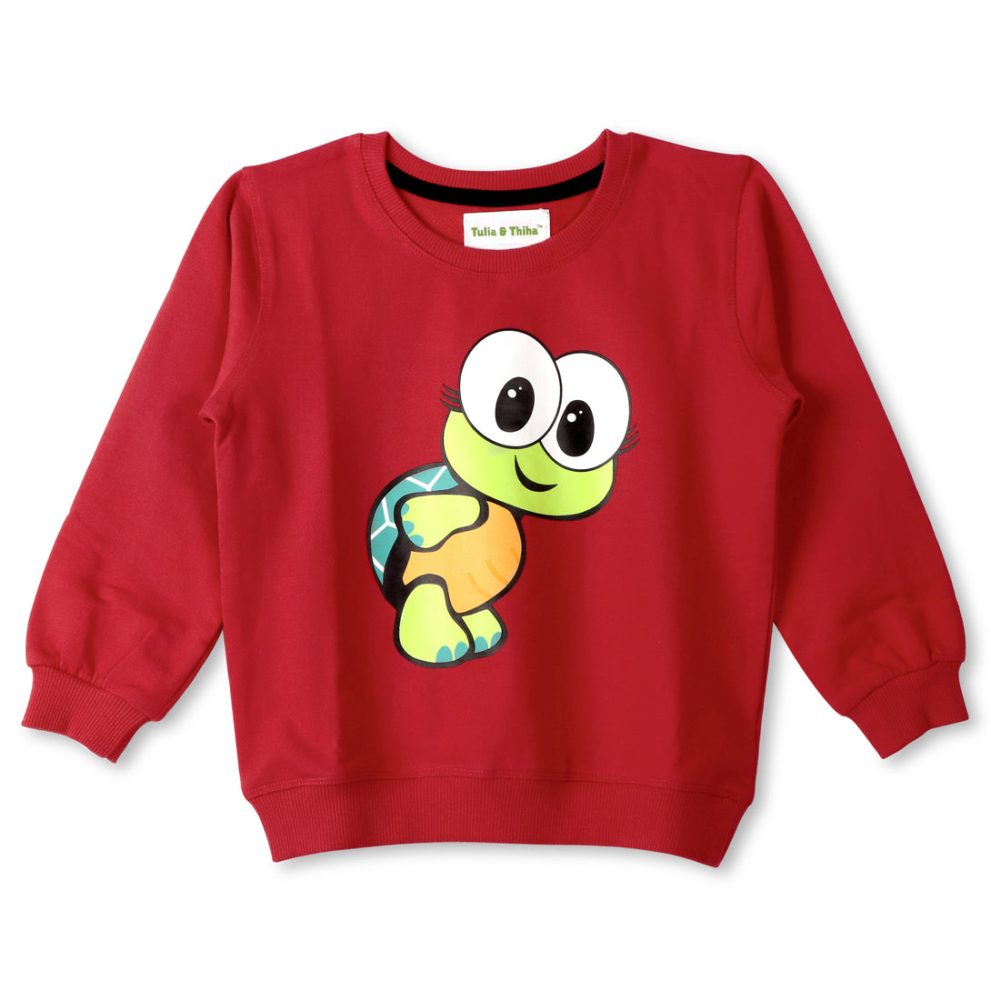 Red Sweatshirt Cotton Round Neck Regular Fit Turtle